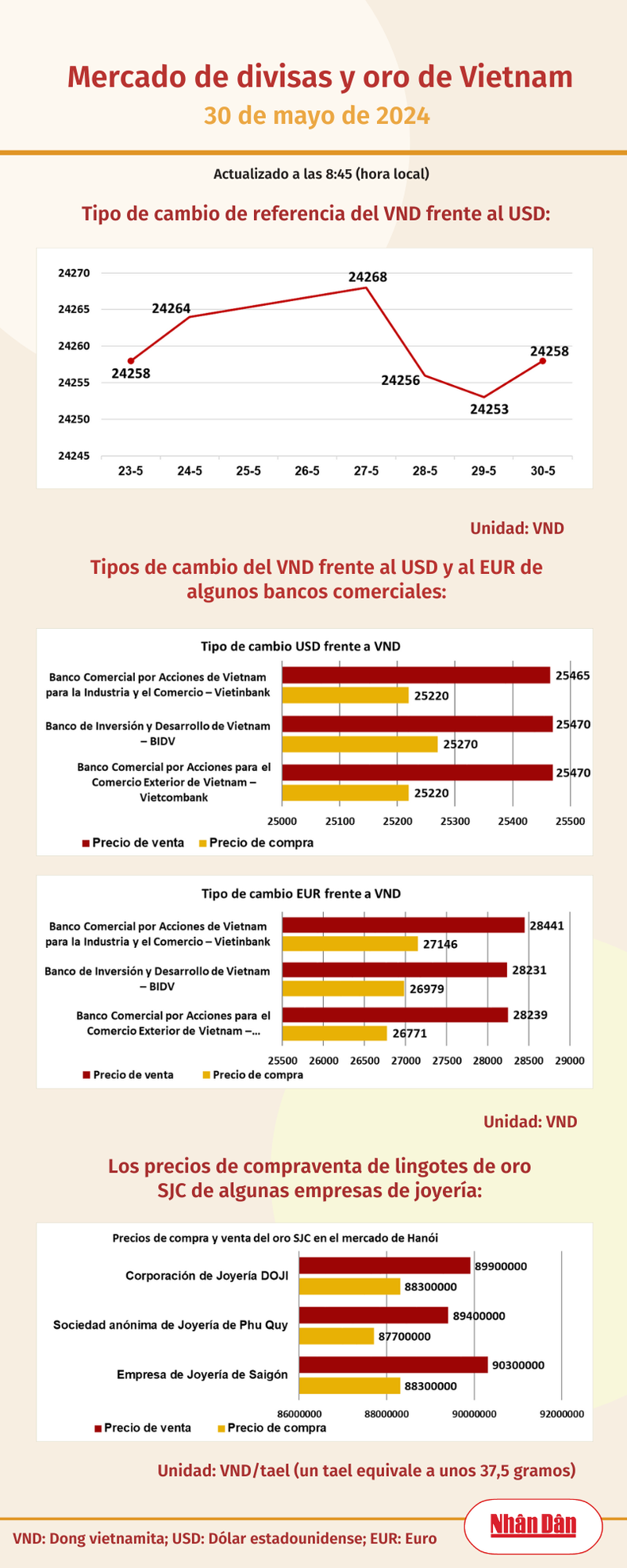 Infografía: Mercado de divisas y oro de Vietnam - 30 de mayo de 2024