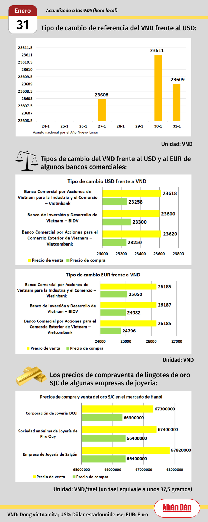 Infografía: Mercado de divisas y oro de Vietnam - 31 de enero de 2023