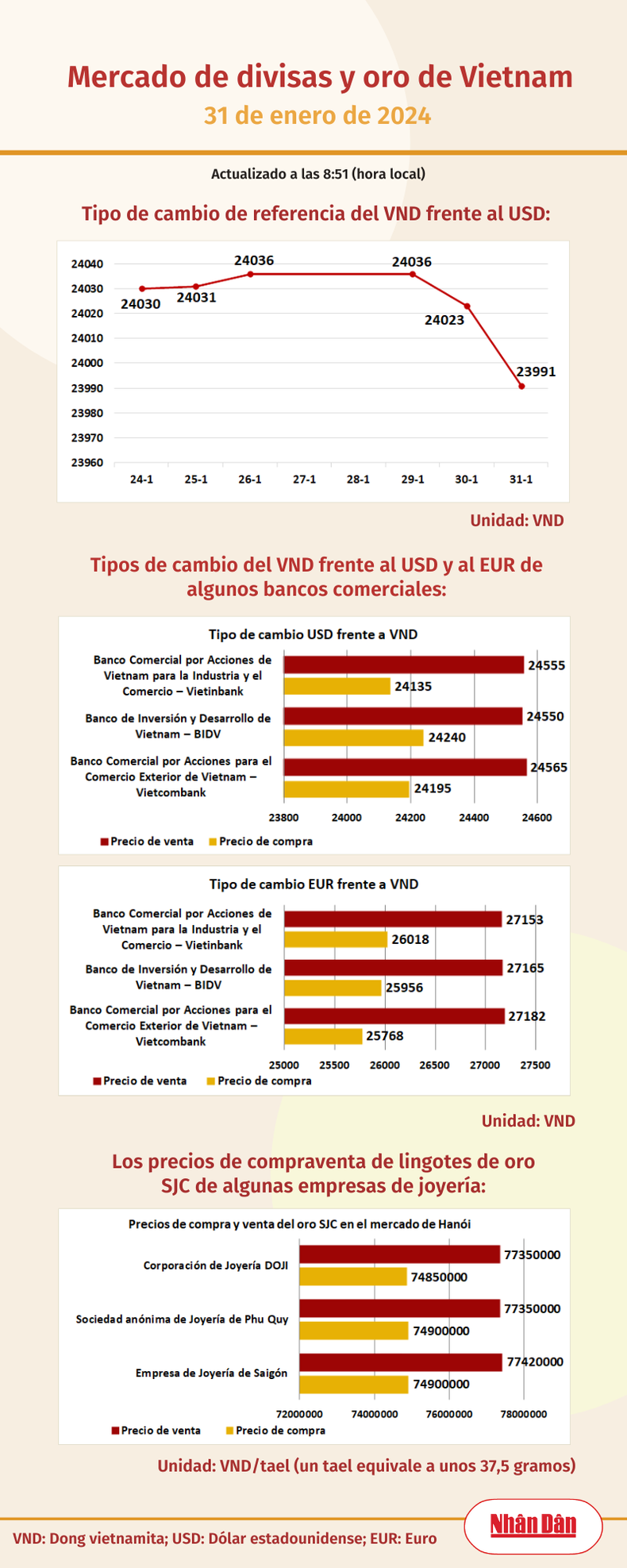 Infografía: Mercado de divisas y oro de Vietnam - 31 de enero de 2024