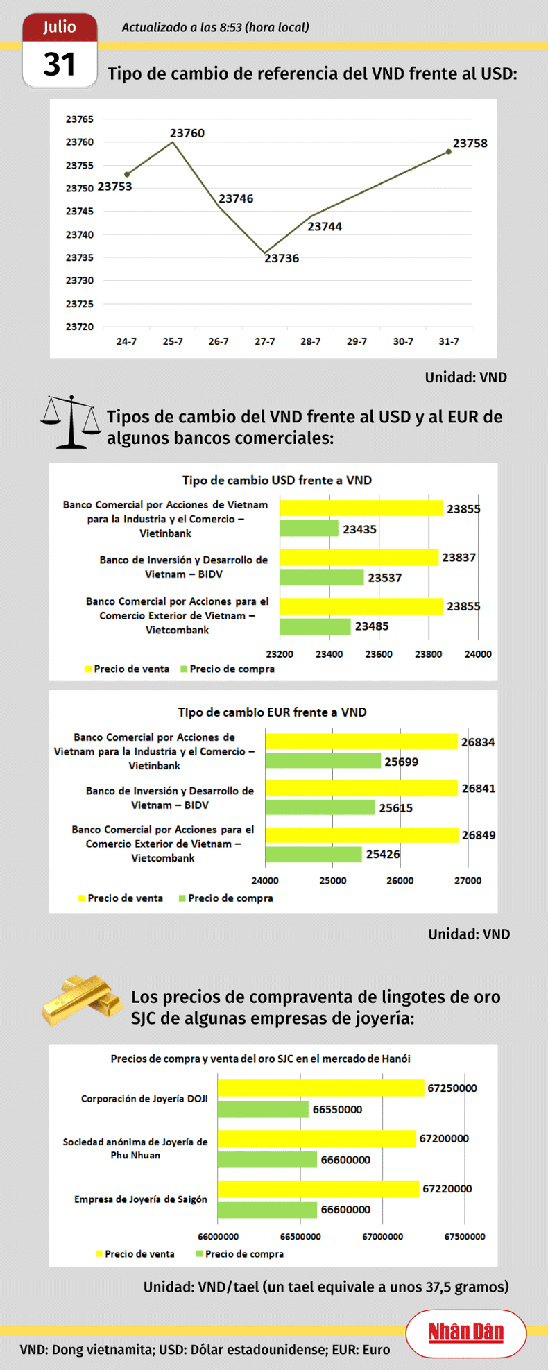 Infografía: Mercado de divisas y oro de Vietnam - 31 de julio de 2023