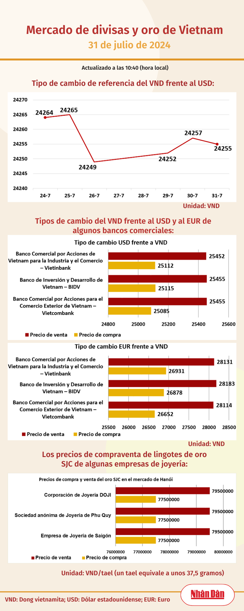 Infografía: Mercado de divisas y oro de Vietnam - 31 de julio de 2024