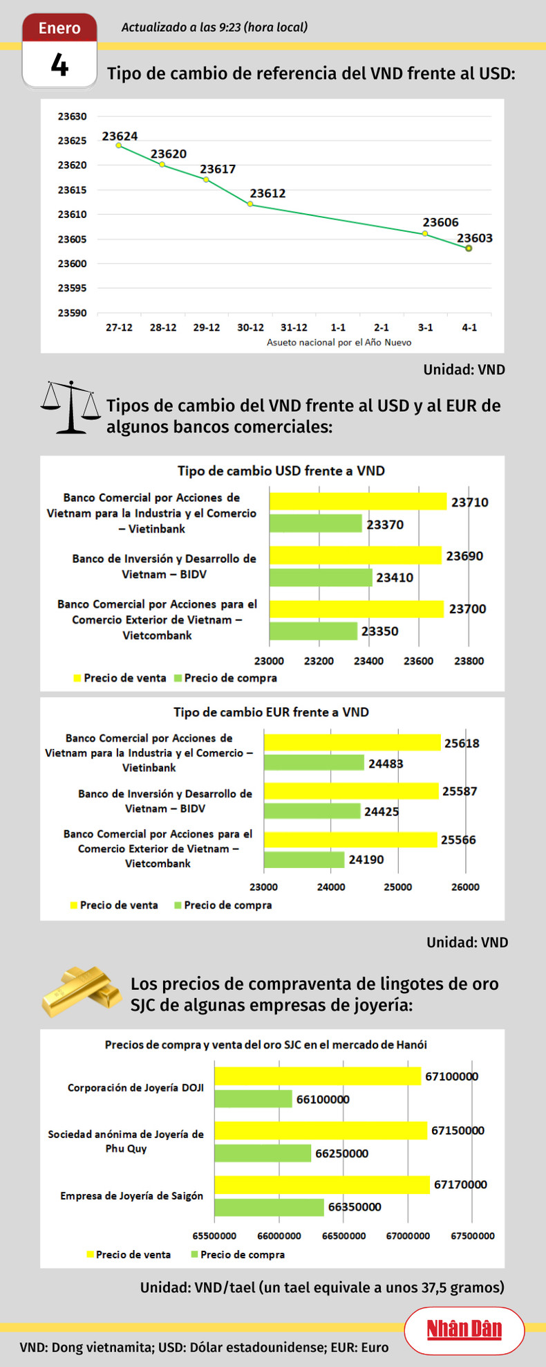 Infografía: Mercado de divisas y oro de Vietnam - 4 de enero de 2023