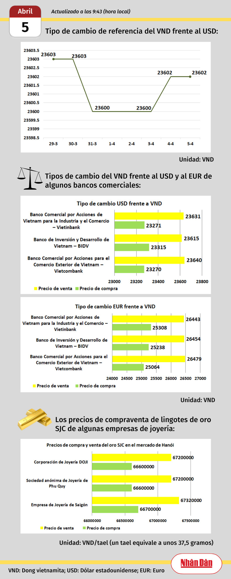 Infografía: Mercado de divisas y oro de Vietnam - 5 de abril de 2023