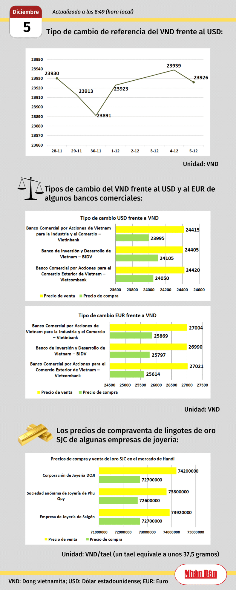 Infografía: Mercado de divisas y oro de Vietnam - 5 de diciembre de 2023
