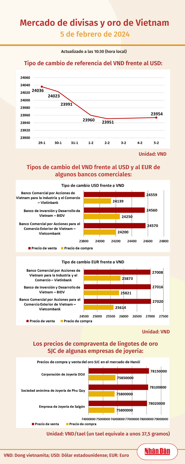 Infografía: Mercado de divisas y oro de Vietnam - 5 de febrero de 2024