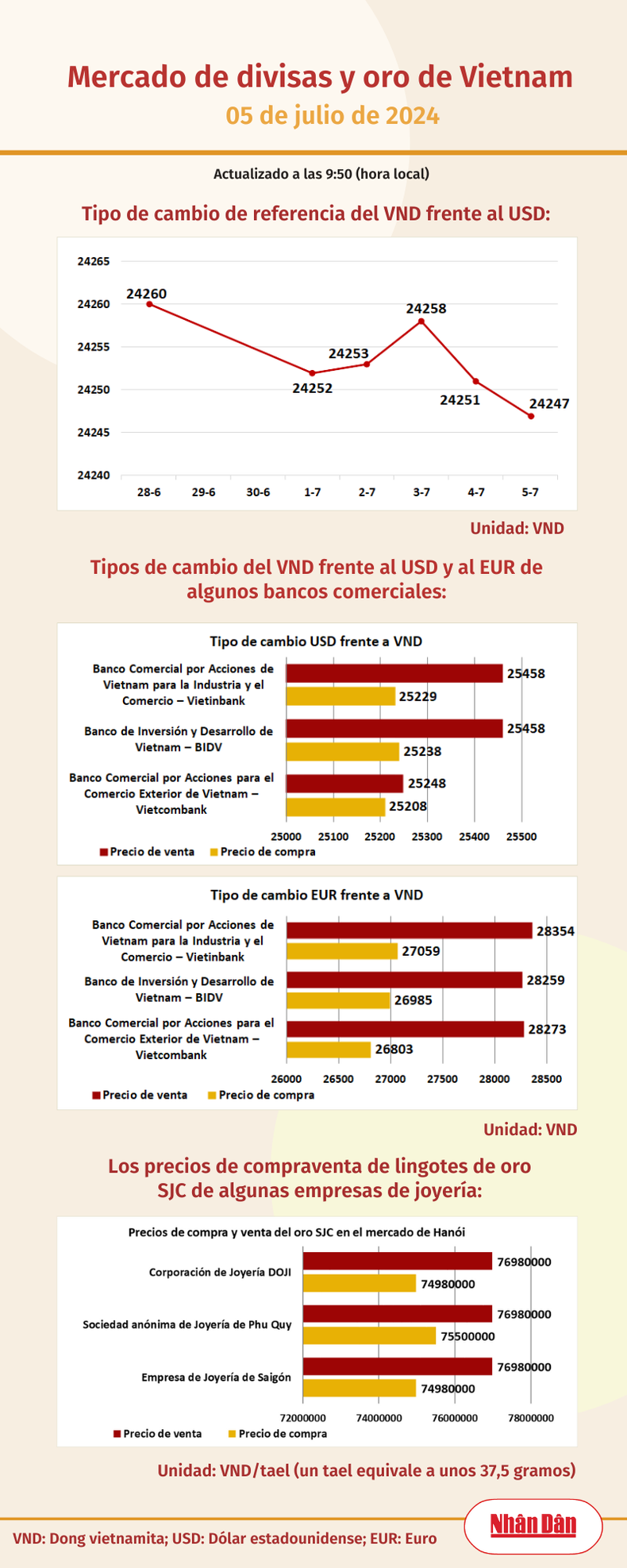 Infografía: Mercado de divisas y oro de Vietnam - 5 de julio de 2024