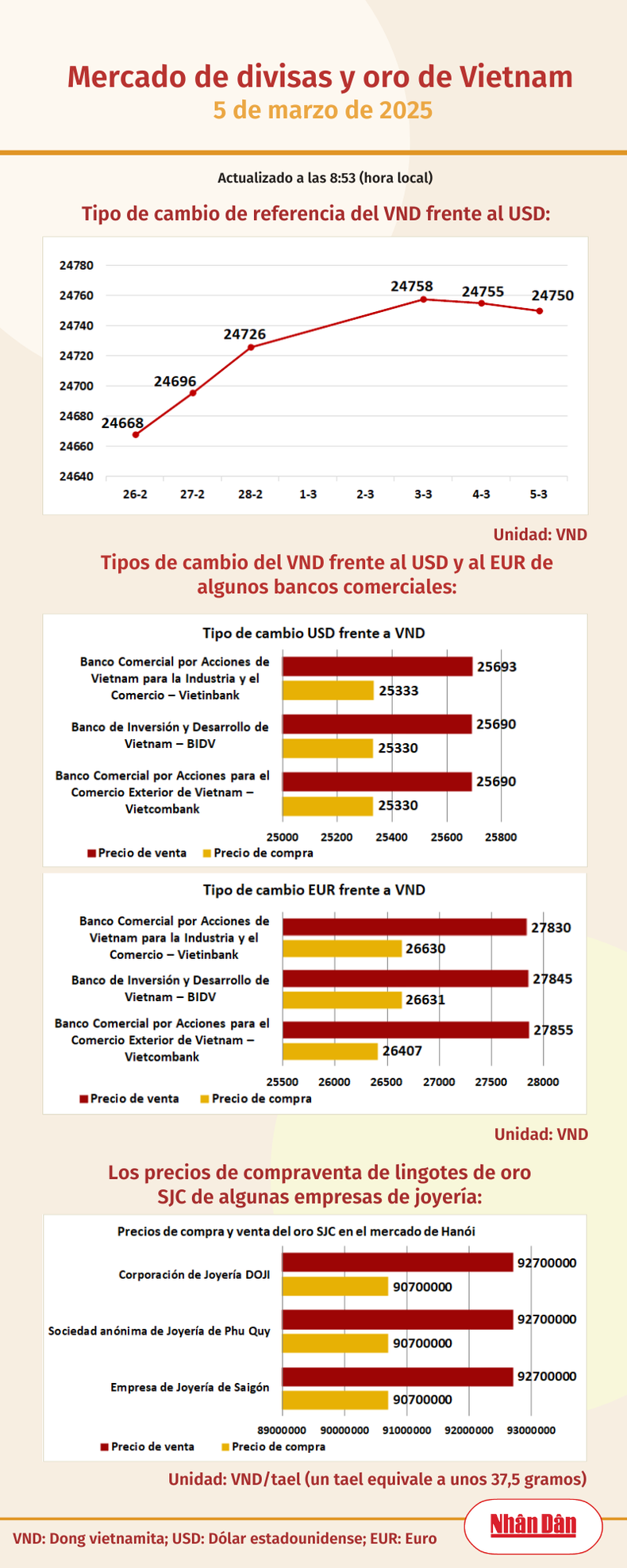 Infografía: Mercado de divisas y oro de Vietnam - 5 de marzo de 2025