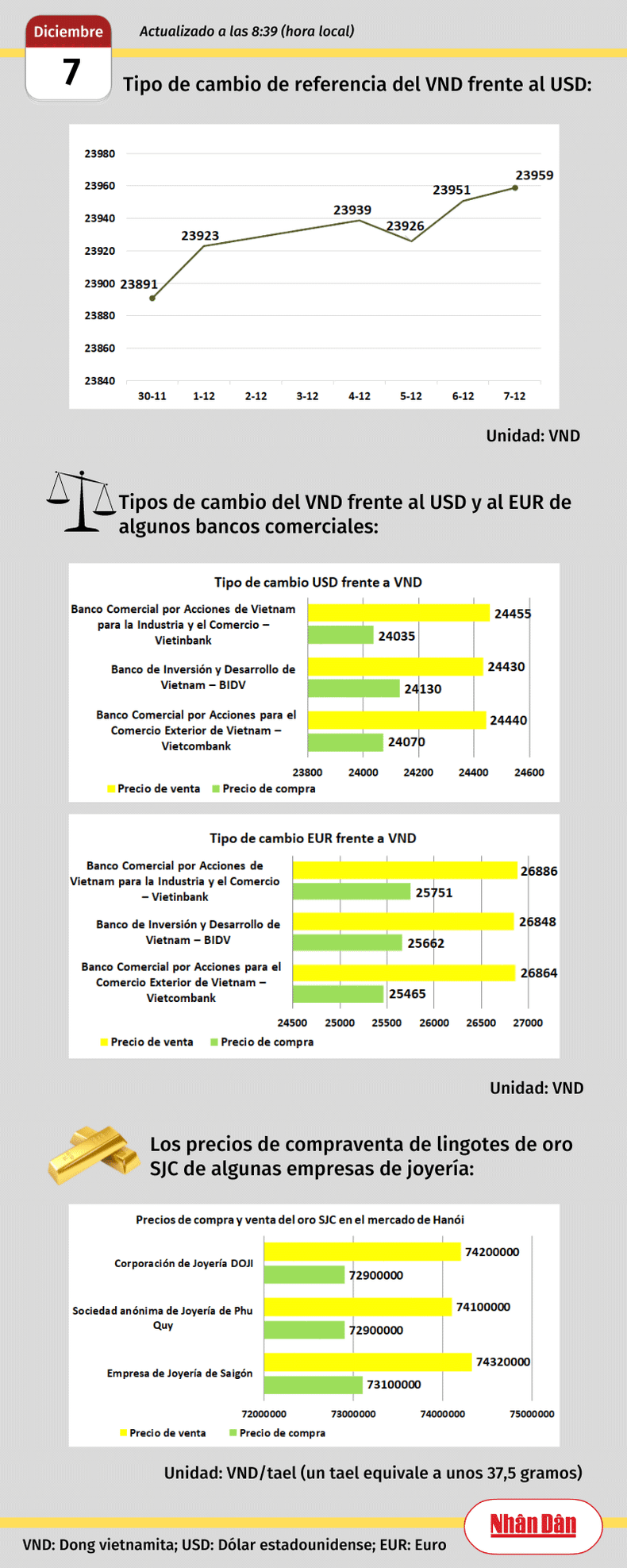 Infografía: Mercado de divisas y oro de Vietnam - 7 de diciembre de 2023