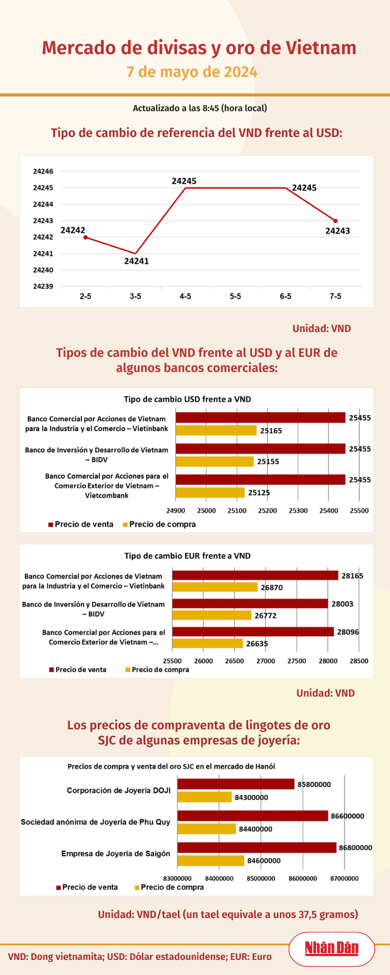 Infografía: Mercado de divisas y oro de Vietnam - 7 de mayo de 2024