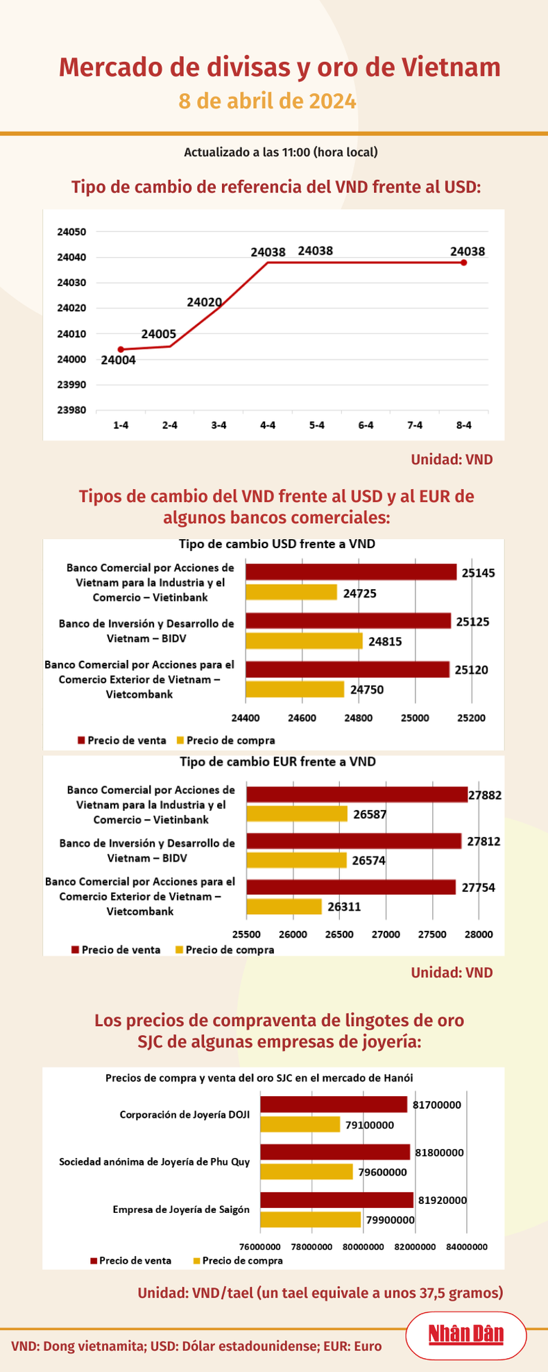 Infografía: Mercado de divisas y oro de Vietnam - 8 de abril de 2024
