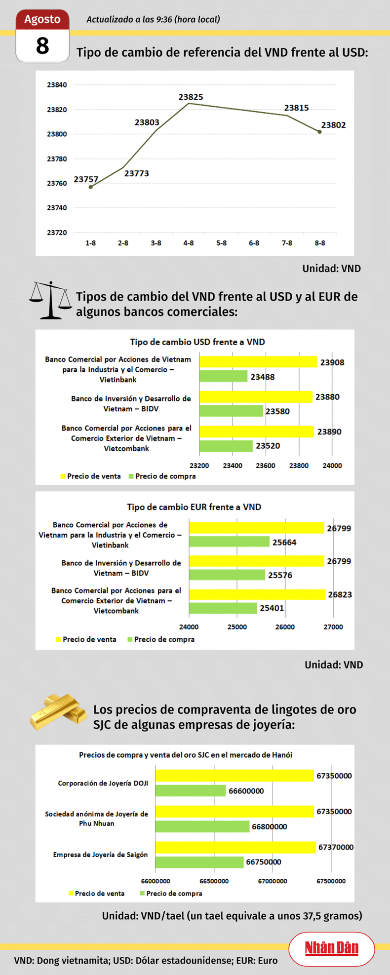 Infografía: Mercado de divisas y oro de Vietnam - 8 de agosto de 2023