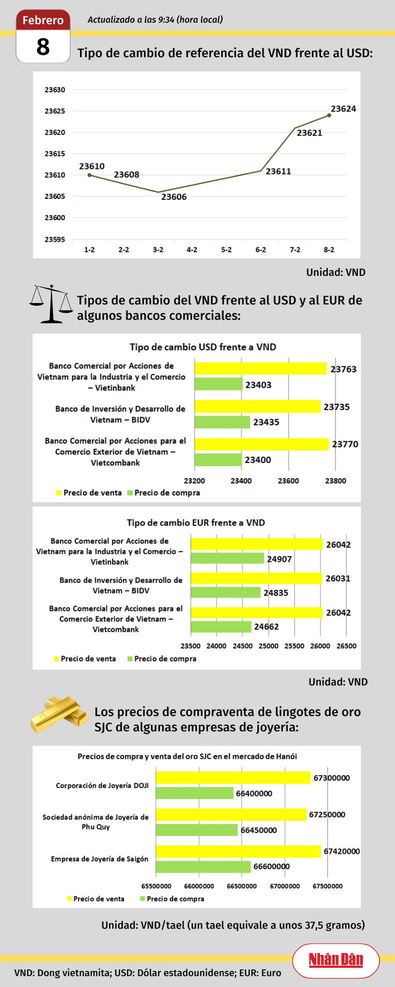 Infografía: Mercado de divisas y oro de Vietnam - 8 de febrero de 2023