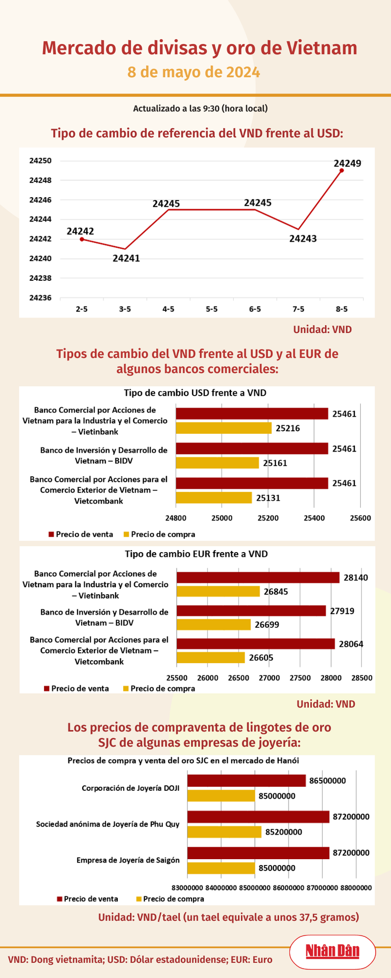 Infografía: Mercado de divisas y oro de Vietnam - 8 de mayo de 2024