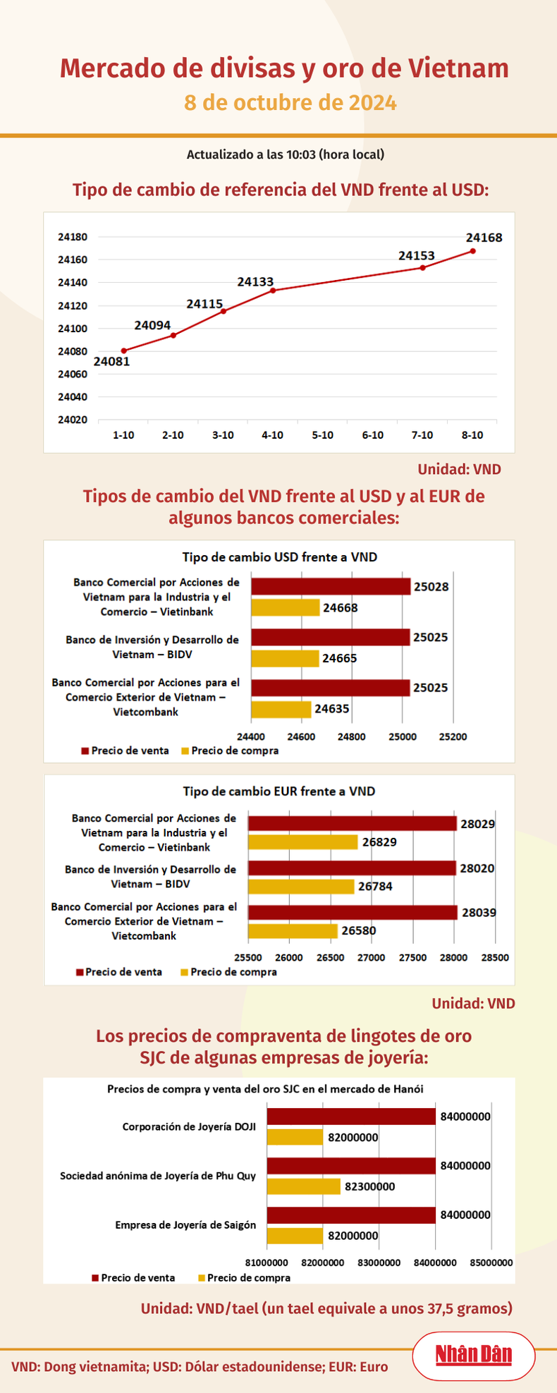 Infografía: Mercado de divisas y oro de Vietnam - 8 de octubre de 2024