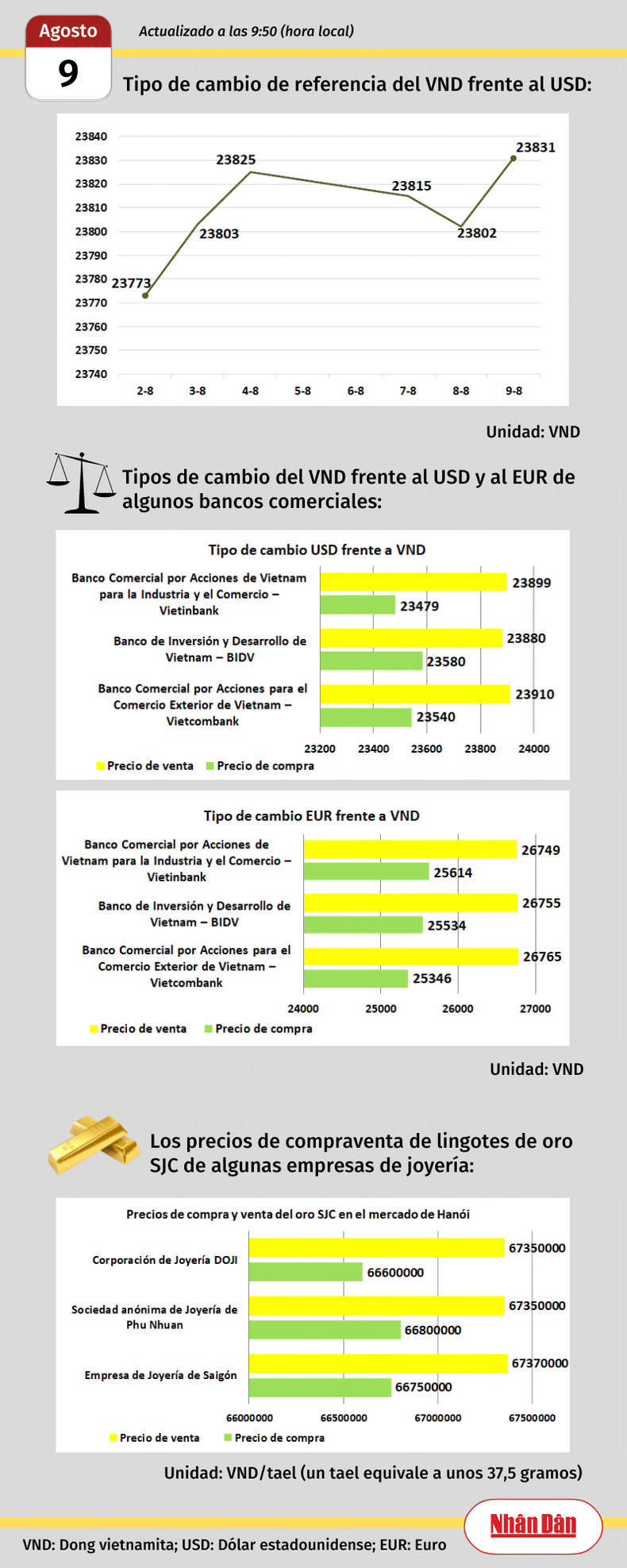 Infografía: Mercado de divisas y oro de Vietnam - 9 de agosto de 2023