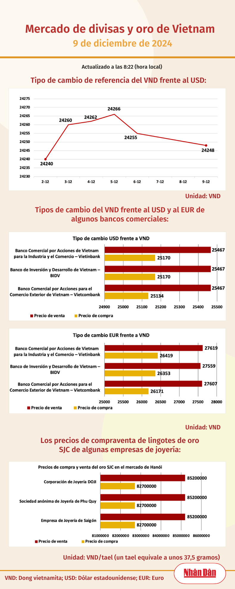 Infografía: Mercado de divisas y oro de Vietnam - 9 de diciembre de 2024
