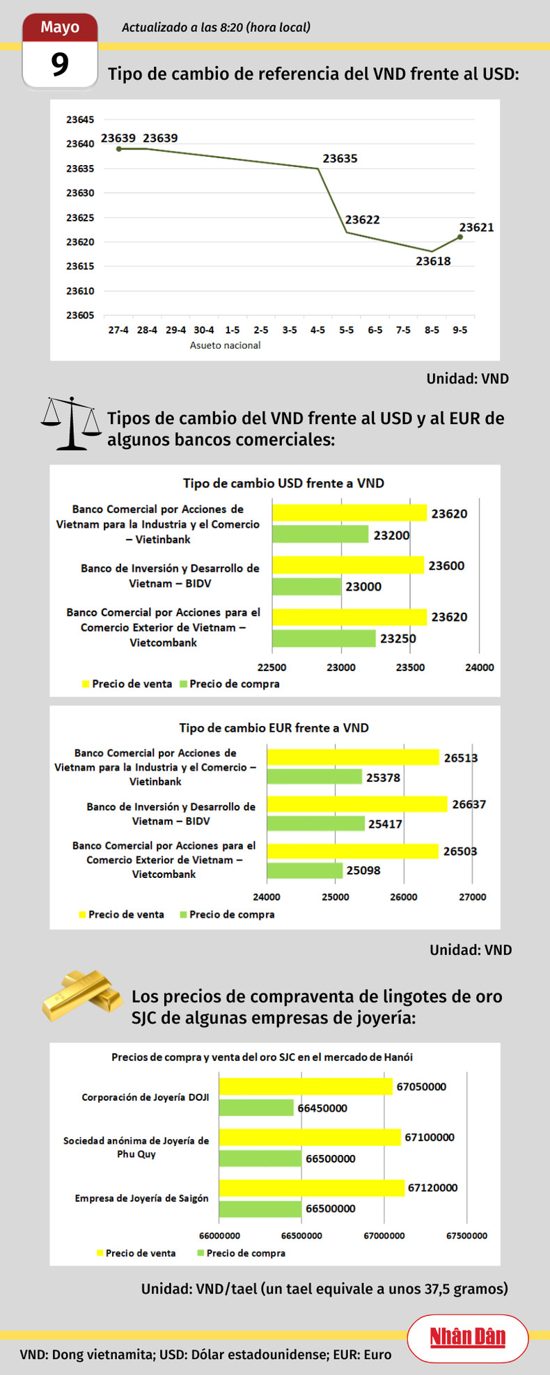 lunes, noviembre 10, 2025 08:48 Infografía: Mercado de divisas y oro de Vietnam - 10 de noviembre de 2025 El dólar estadounidense se cotiza hoy en 25106 dongs vietnamitas (VND) (Referencia del Banco Estatal de Vietnam)