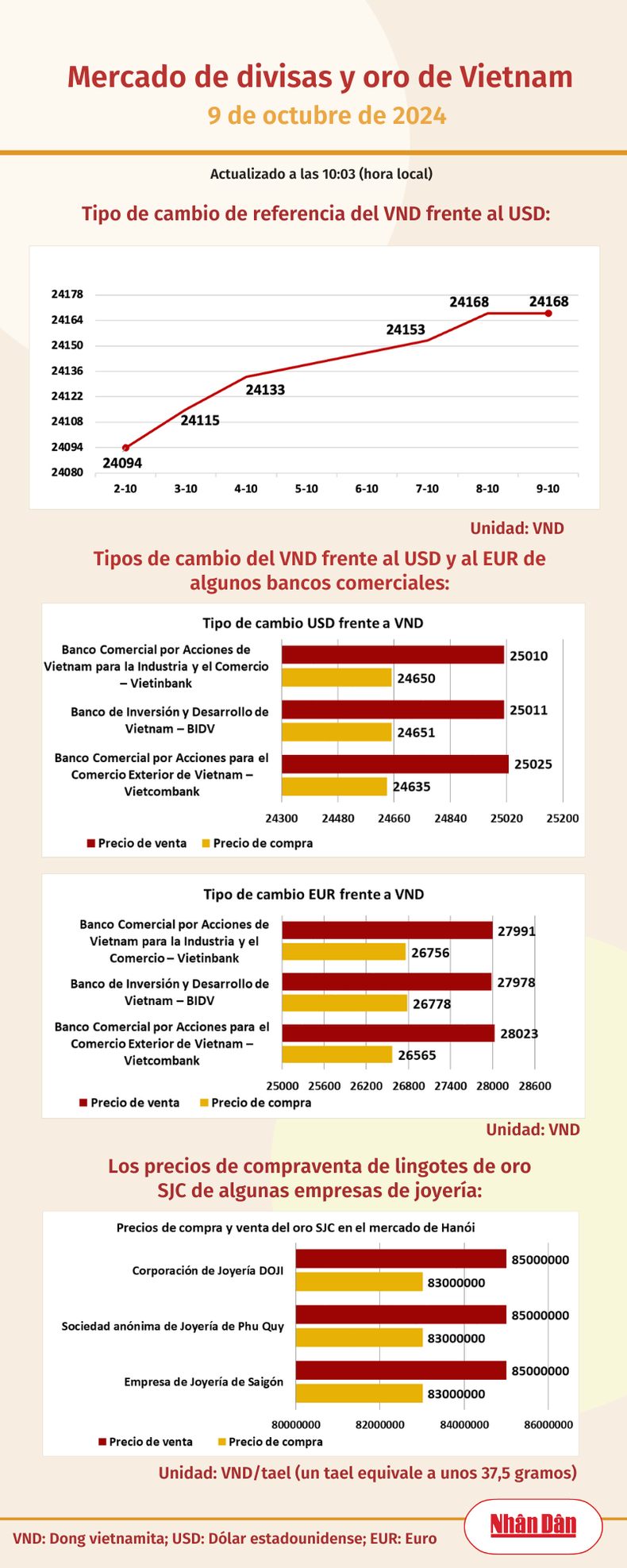 lunes, noviembre 10, 2025 08:48 Infografía: Mercado de divisas y oro de Vietnam - 10 de noviembre de 2025