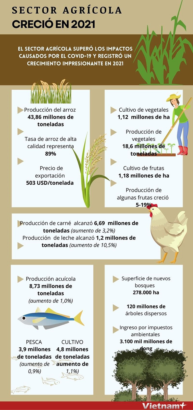 Infografía: Sector agrícola de Vietnam registró crecimiento en 2021