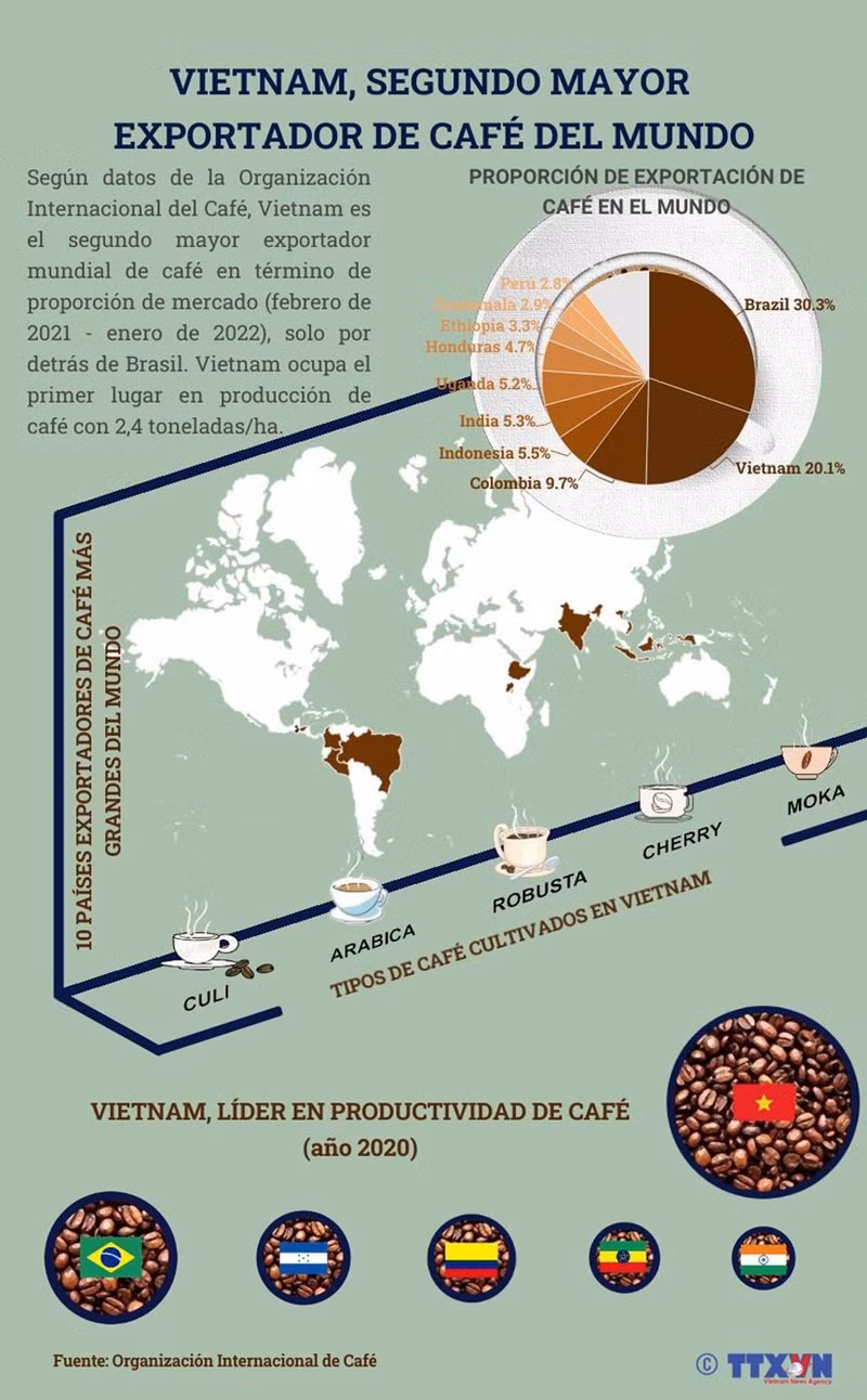 Infografía: Vietnam, segundo mayor exportador de café del mundo