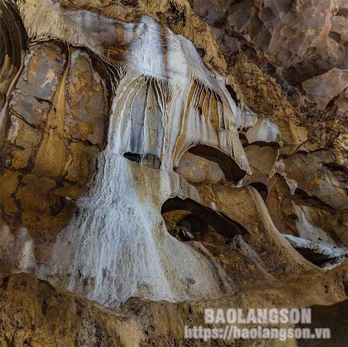 | Los primeros tres niveles que bajan desde la entrada de la cueva, con aire fresco y húmedo, tienen un área bastante grande y muchas hermosas estalactitas. |