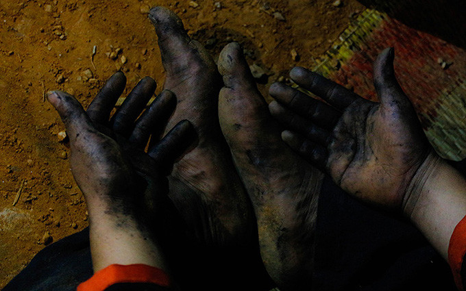 Después del ritual, los adolescentes descalzados de la etnia Pa Then saltan al carbón caliente.