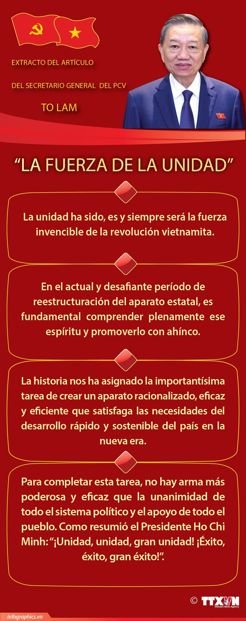 El secretario general del Partido Comunista de Vietnam, To Lam, ha escrito un artículo enfatizando el poder de la unidad para impulsar al país hacia la nueva era de desarrollo.