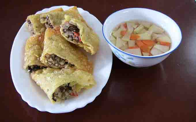 Se puede comerlos como lo hace la gente local, acompañando los nem cua be con hierbas frescas y lechuga, así como sumergirlos en salsa de pescado.