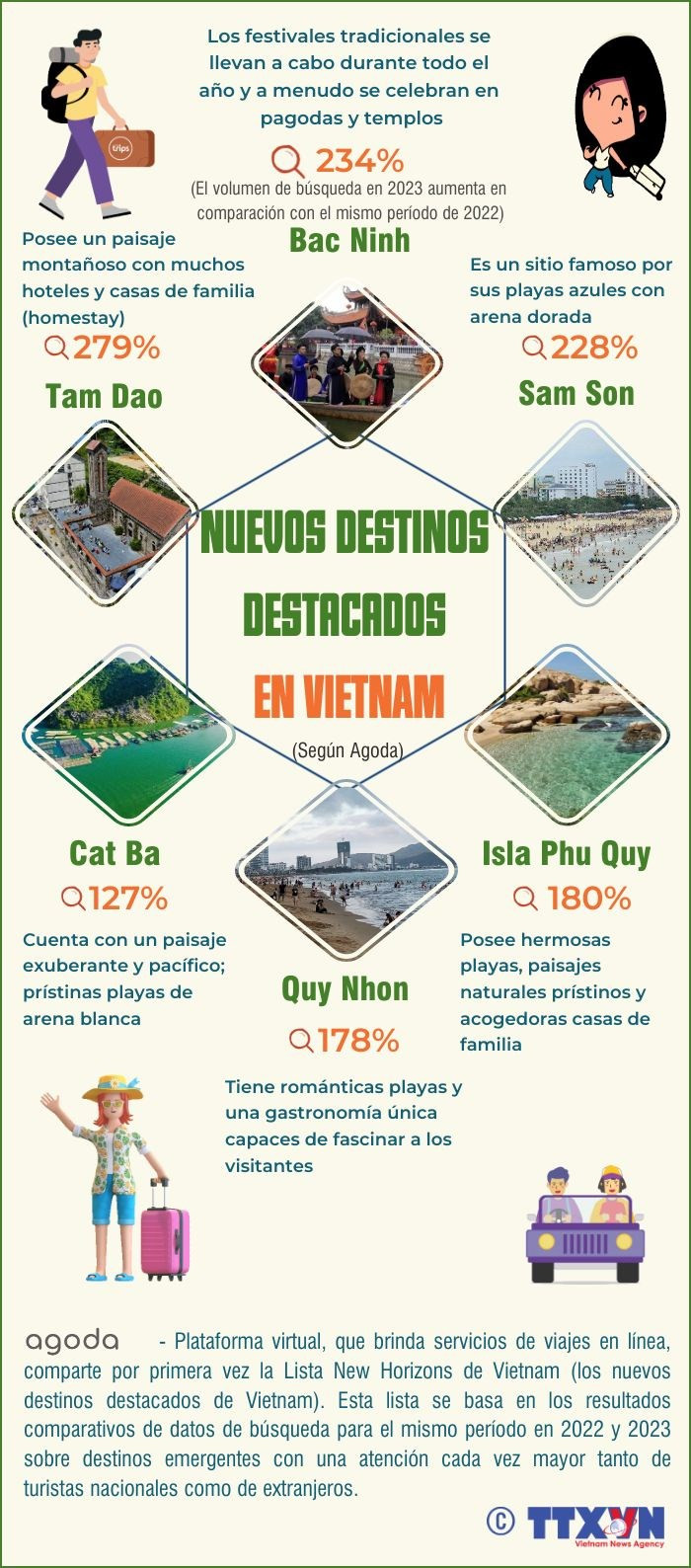 Agoda- Plataforma virtual, que brinda servicios de viajes en línea, comparte por primera vez la Lista New Horizons de Vietnam (los nuevos destinos destacados de Vietnam). Esta lista se basa en los resultados comparativos de datos de búsqueda para el mismo período en 2022 y 2023 sobre destinos emergentes con una atención cada vez mayor tanto de turistas nacionales como de extranjeros.