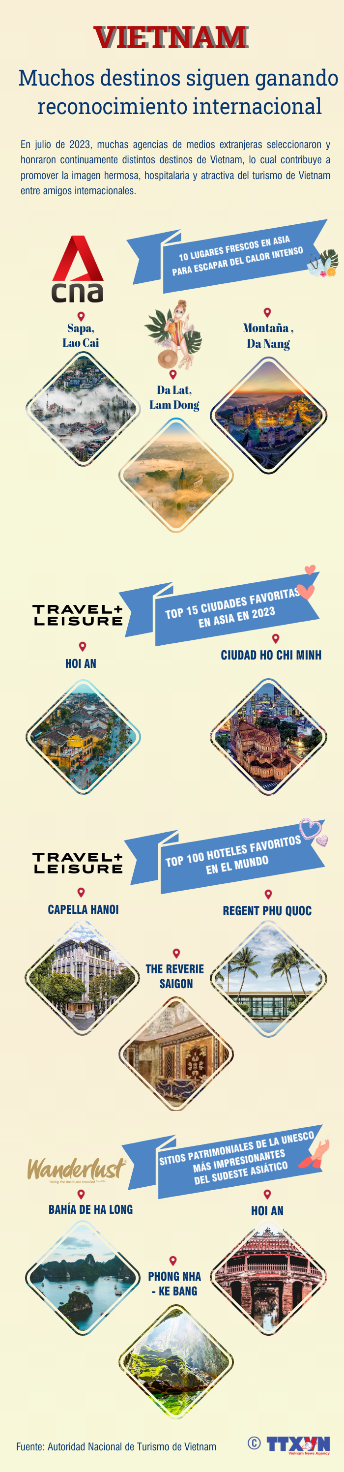Diversas agencias extranjeras de medios de prensa honraron continuamente, en el pasado mes de julio, a los destinos de Vietnam, lo cual contribuye a promover la imagen hermosa, hospitalaria y atractiva del turismo del país indochino entre amigos internacionales.