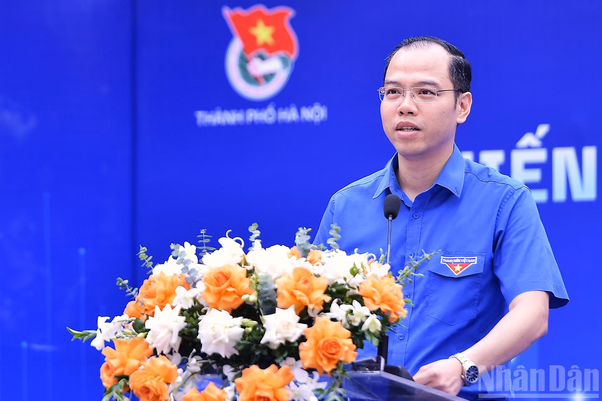 Nguyen Tien Hung, subsecretario de la Unión de Jóvenes Comunistas Ho Chi Minh en Hanói y presidente de la Asociación de Estudiantes vietnamitas en la capital, interviene en la cita.