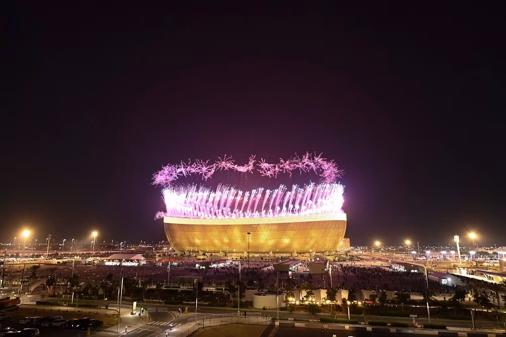 Los fuegos artificiales iluminan el techo del estadio de Lusail.