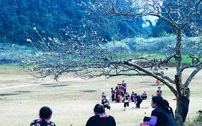 En el siguiente pequeño camino hacia el bosque, todavía quedan las marcas de la competencia de maratón del mes pasado con la participación de mil 900 atletas provenientes de 39 países. Tras pasar el largo camino cubierto por las flores blancas de acelga y violetas flores salvajes, los aventureros llegarán a la aldea Phieng Canh de la etnia Mong. El cansancio desvanecerá al apreciar la hermosura de las flores de ciruelo, cerezo y acelga que componen el paisaje primaveral de este lugar. Los niños con su inocente sonrisa juegan bajo los ciruelos blancos, los jóvenes animados en los juegos tradicionales, y la amabilidad y hospitalidad de los aldeanos dejarán inolvidables memorias a los visitantes sobre el Moc Chau más prístino, más nativo y más puro.