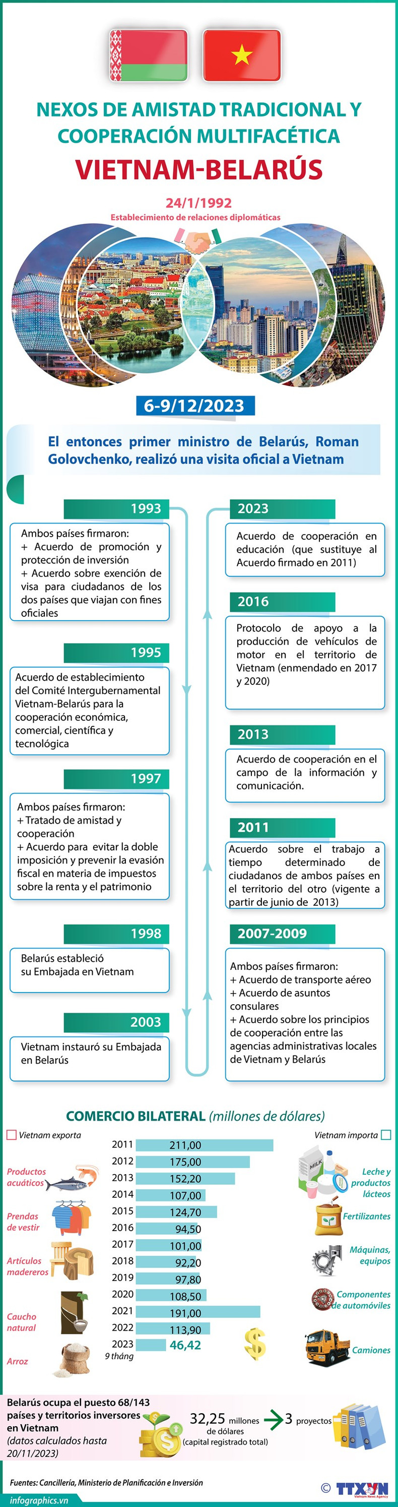 En los últimos años, las relaciones entre Vietnam y Belarús siempre se han fortalecido y desarrollado, contribuyendo significativamente a la construcción nacional de cada país.