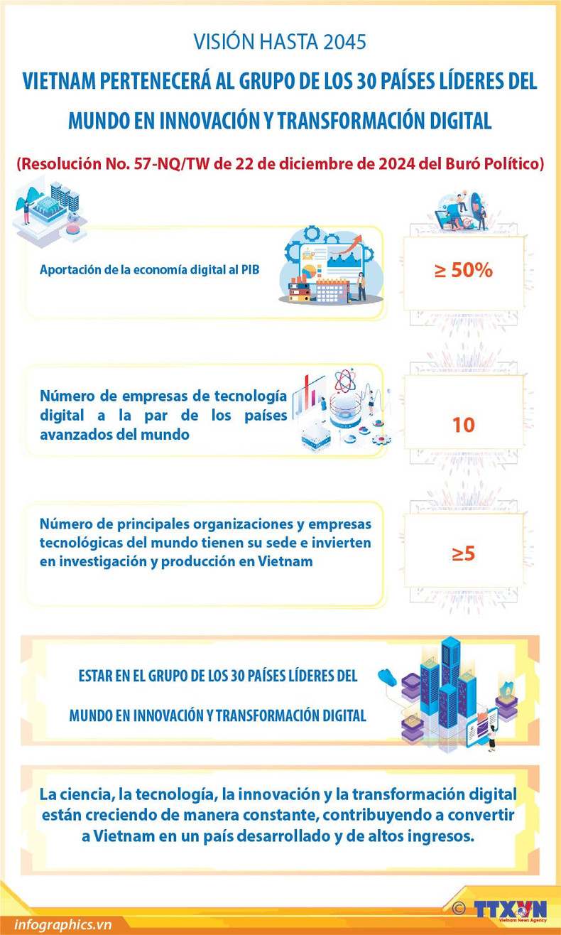 La Resolución del Buró Político sobre el desarrollo innovador de la ciencia, la tecnología, la innovación y la transformación digital establece el objetivo de que para 2045 estos sectores se desarrollen firmemente, contribuyendo a hacer de Vietnam un país desarrollado y de altos ingresos.
