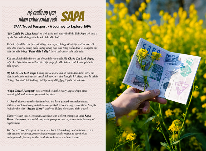 Con sólo 35 mil dong vietnamita (1,37 dólares), los turistas ya pueden comprar un pasaporte de recuerdo para hacer check-in en 12 destinos famosos en Sa Pa, como la Iglesia de Piedra, Sun Plaza, pico Fansipan, montaña Ham Rong, puerta al cielo O Quy Ho, valle Muong Hoa, los pueblos Cat Cat, Ta Van, Hau Chu Ngai y Ta Phin, entre otros.
