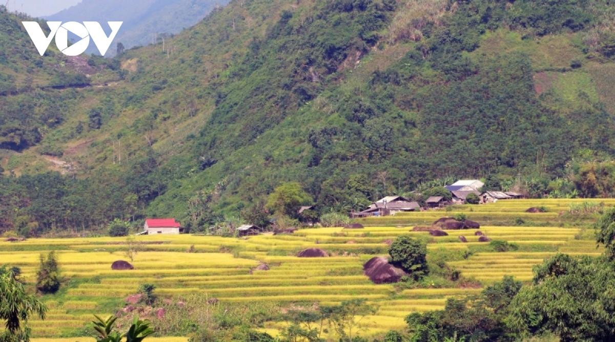 | Además, pueden hacer checkin en campos de arroz dorado en terraza en la comuna de Quang Khe y pasar por la cercana cueva de Hua Ma, un obligatorio destino en Ba Be por su magnificiencia. |
