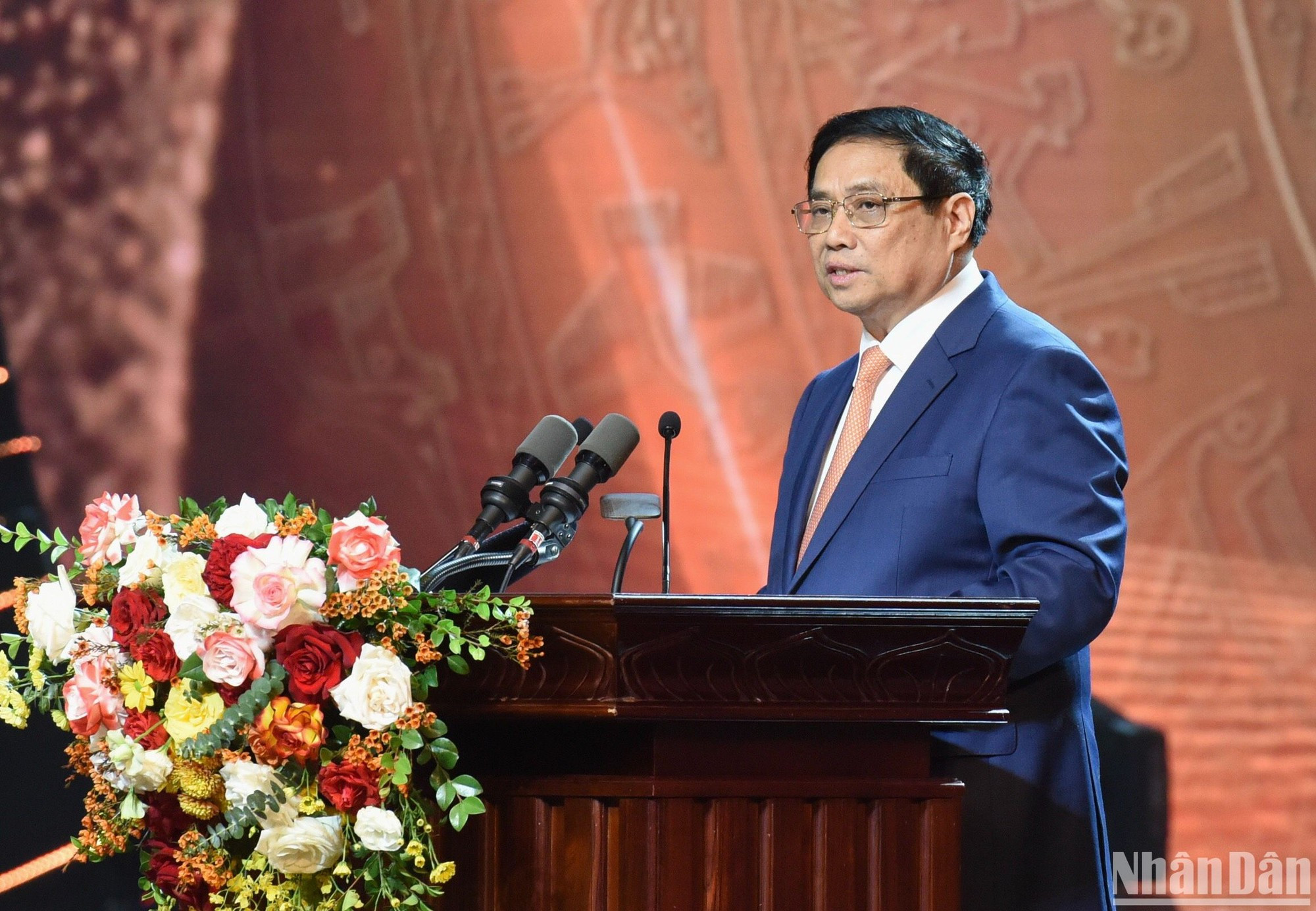 En su intervención en la ceremonia, el primer ministro Pham Minh Chinh hizo un breve recuento de los logros alcanzados por el país en el último año en la aplicación de la resolución del XIII Congreso Nacional del PCV bajo la dirección del Partido, el Buró Político y el Secretariado encabezado por el secretario general Nguyen Phu Trong.