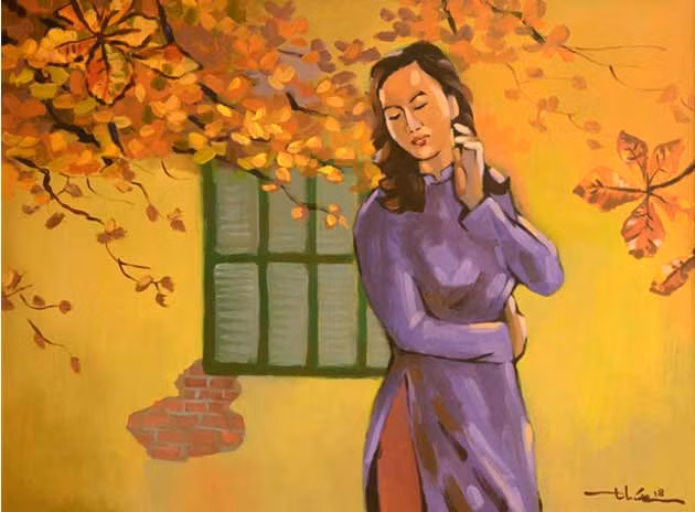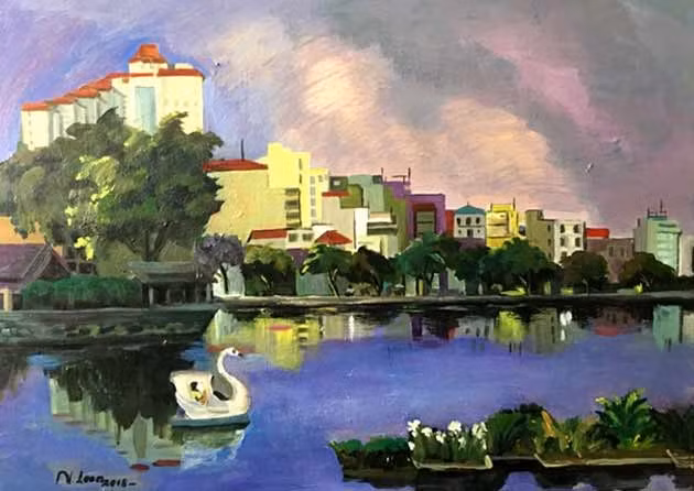Obra “El lago Truc Bach” (material acrílico) de Nguyen Kim Loan.