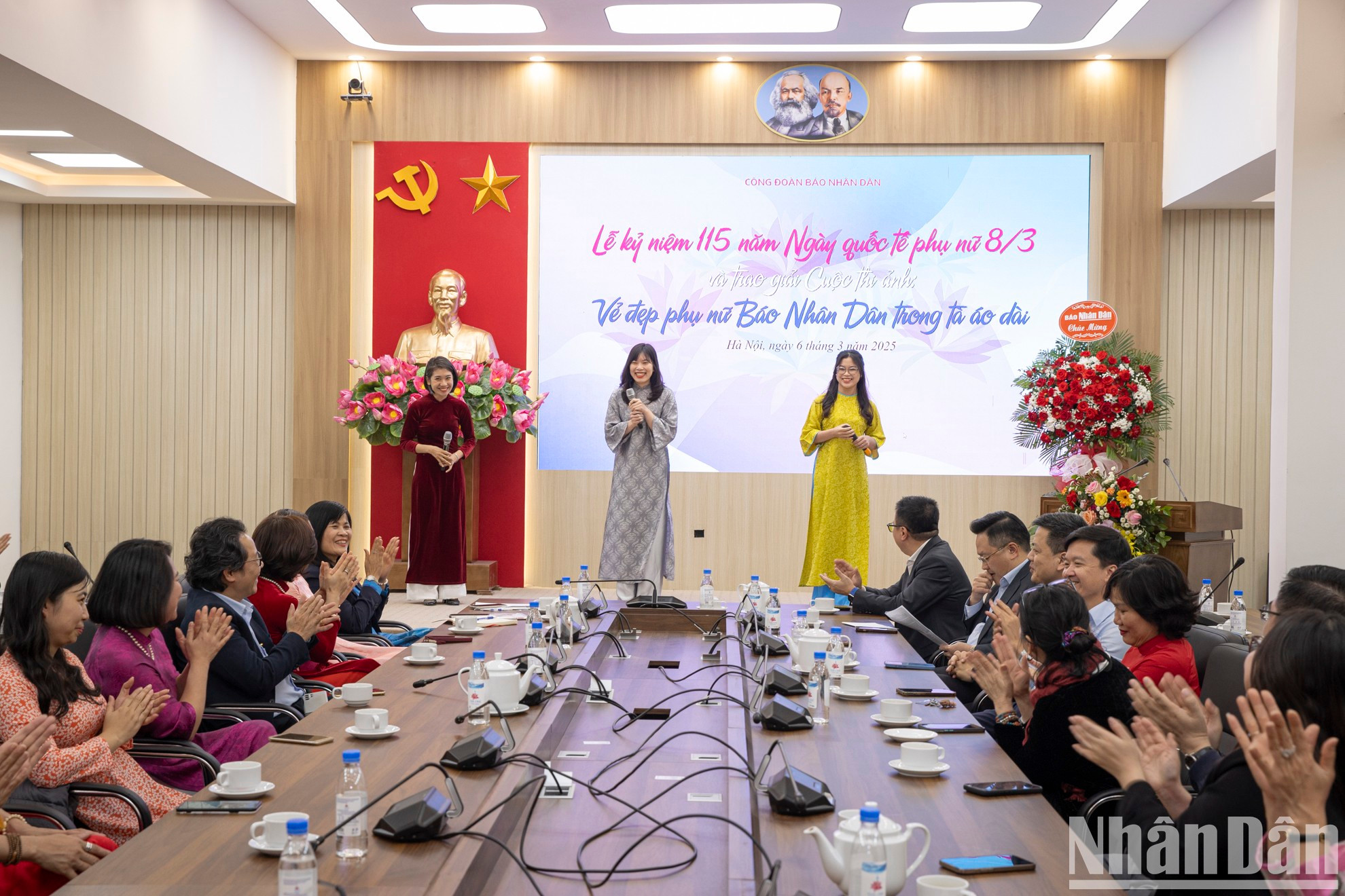El periódico Nhan Dan (Pueblo) celebró hoy un acto conmemorativo del Día Internacional de la Mujer (8 de marzo) y entregó premios a los ganadores del concurso fotográfico en el que se rindió homenaje a la belleza de sus trabajadoras vistiendo ao dai, la túnica tradicional vietnamita.