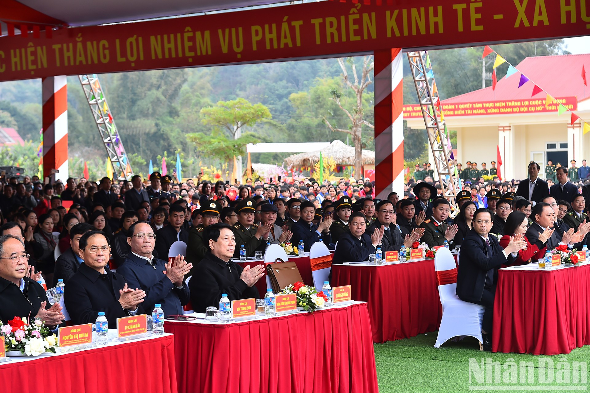 | Gente de la comuna de Chien Thang en el distritode Chi Lang, da bienvenido al presidente Luong Cuong. |