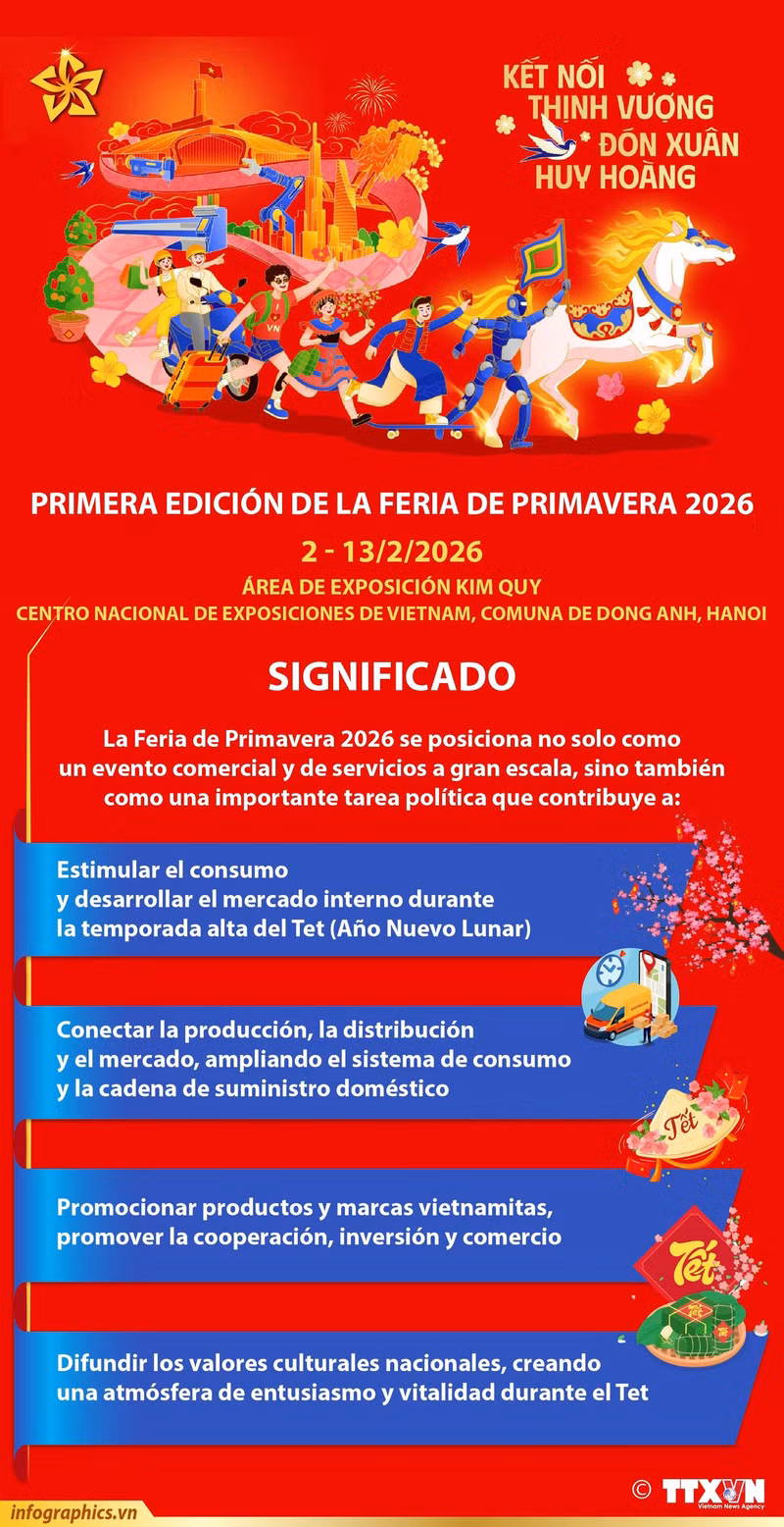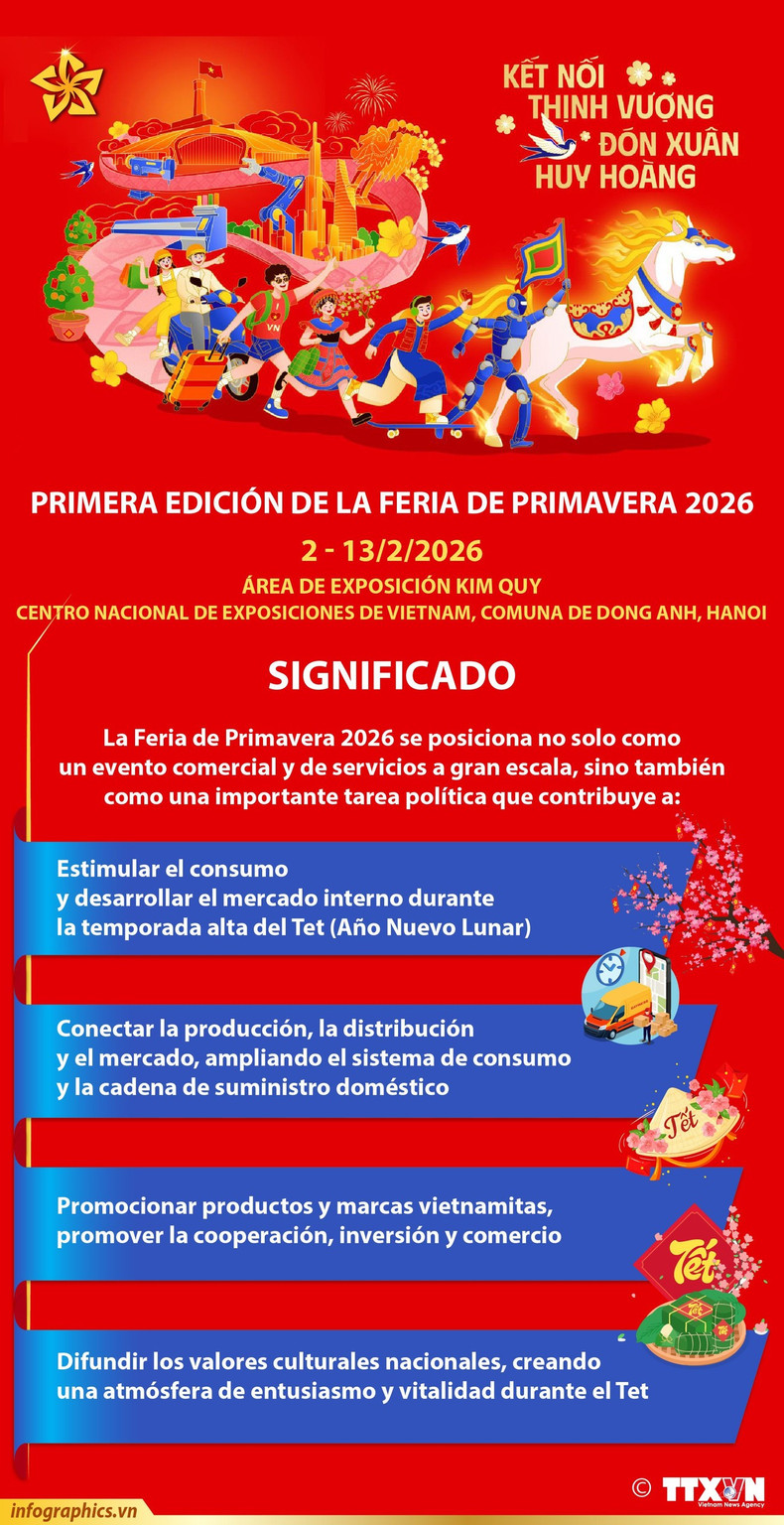 La Feria de Primavera 2026 tiene lugar del 2 al 13 de febrero en el Centro Nacional de Exposiciones de Vietnam, en la comuna de Dong Anh, Hanói.