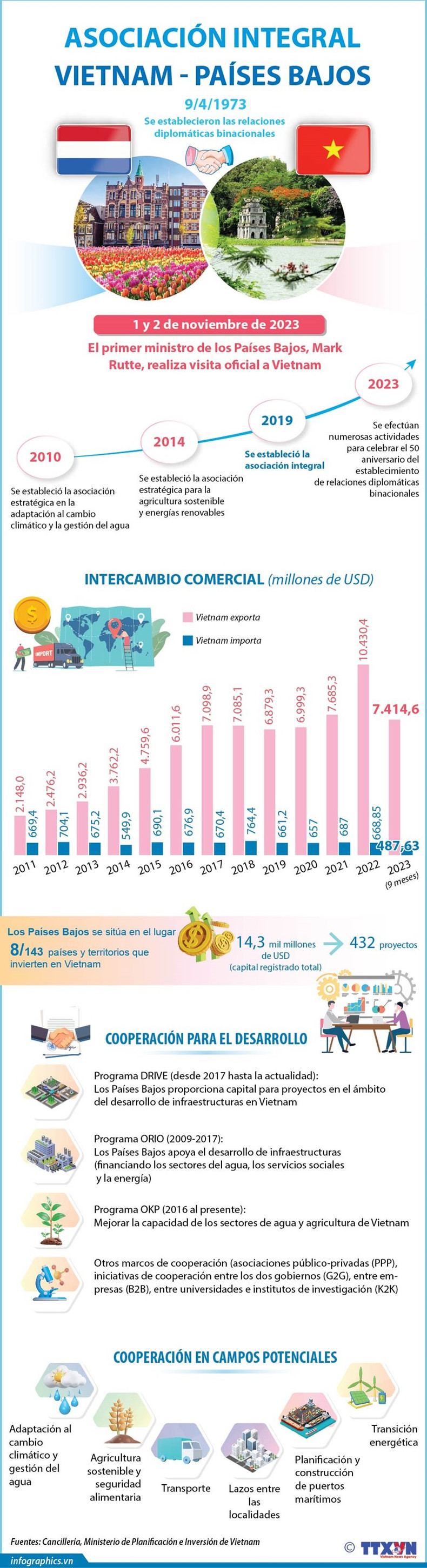 El primer ministro de los Países Bajos, Mark Rutte, realiza una visita oficial a Vietnam del 1 al 2 de este mes, en respuesta a una invitación de su par anfitrión, Pham Minh Chinh.
