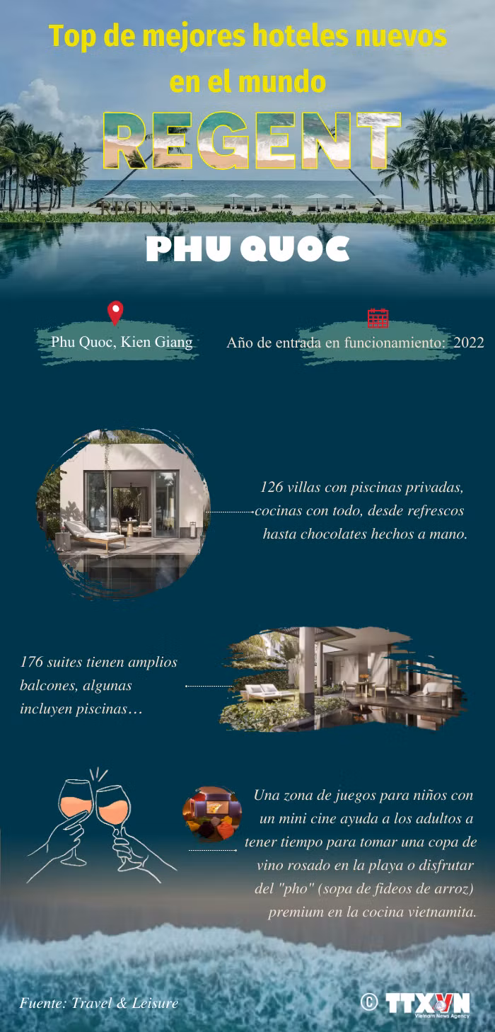 La prestigiosa revista de viajes con sede en Nueva York Travel + Leisure incluyó a Regent Phu Quoc de Vietnam entre mejores hoteles nuevos en el mundo.