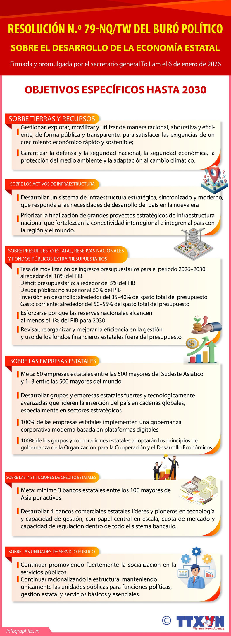 La resolución fija como objetivo central reforzar la eficiencia y el papel estratégico de la economía estatal en sectores clave, para liderar y apoyar al resto de los actores económicos, impulsar un crecimiento rápido y sostenible, garantizar la defensa y la seguridad nacional, y promover la equidad social.