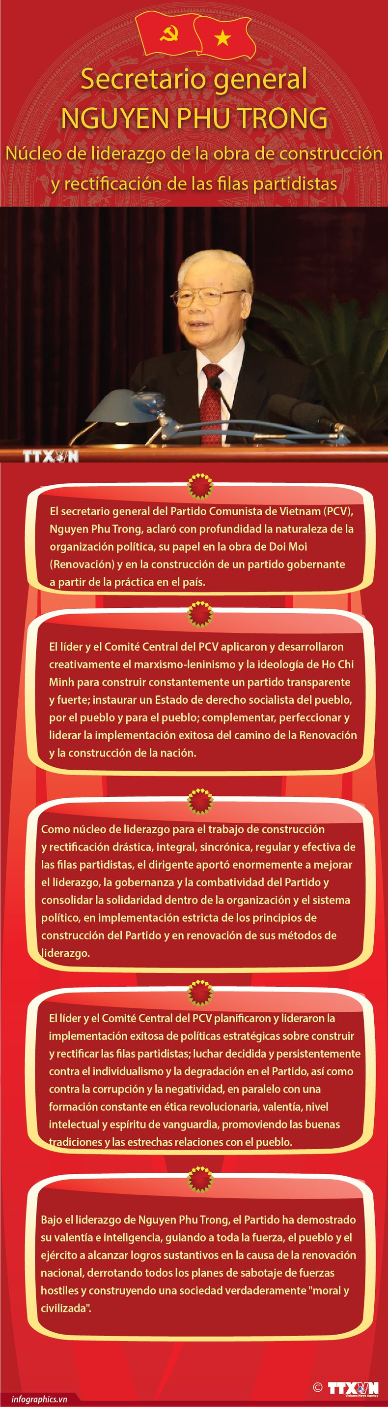 El secretario general del Partido Comunista de Vietnam (PCV), Nguyen Phu Trong, aclaró con profundidad la naturaleza de la organización política, su papel en la obra de Doi Moi (Renovación) y en la construcción de un partido gobernante a partir de la práctica en el país.