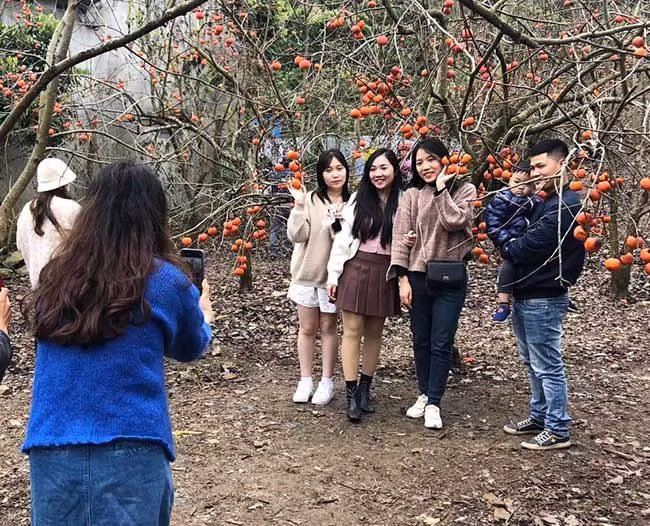 Además de las huertas de melocotón y ciruelo en su mejor momento de floración, los turistas tienen como opción admirar el brillante color naranja de los caquis maduros en las aldeas de On, Na Ka, Tan Lap o Phieng Canh.