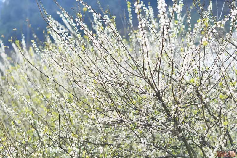 El color blanco puro de las flores del ciruelo hace brillar las montañas y los bosques en Moc Chau para dar la bienvenida a la primavera.