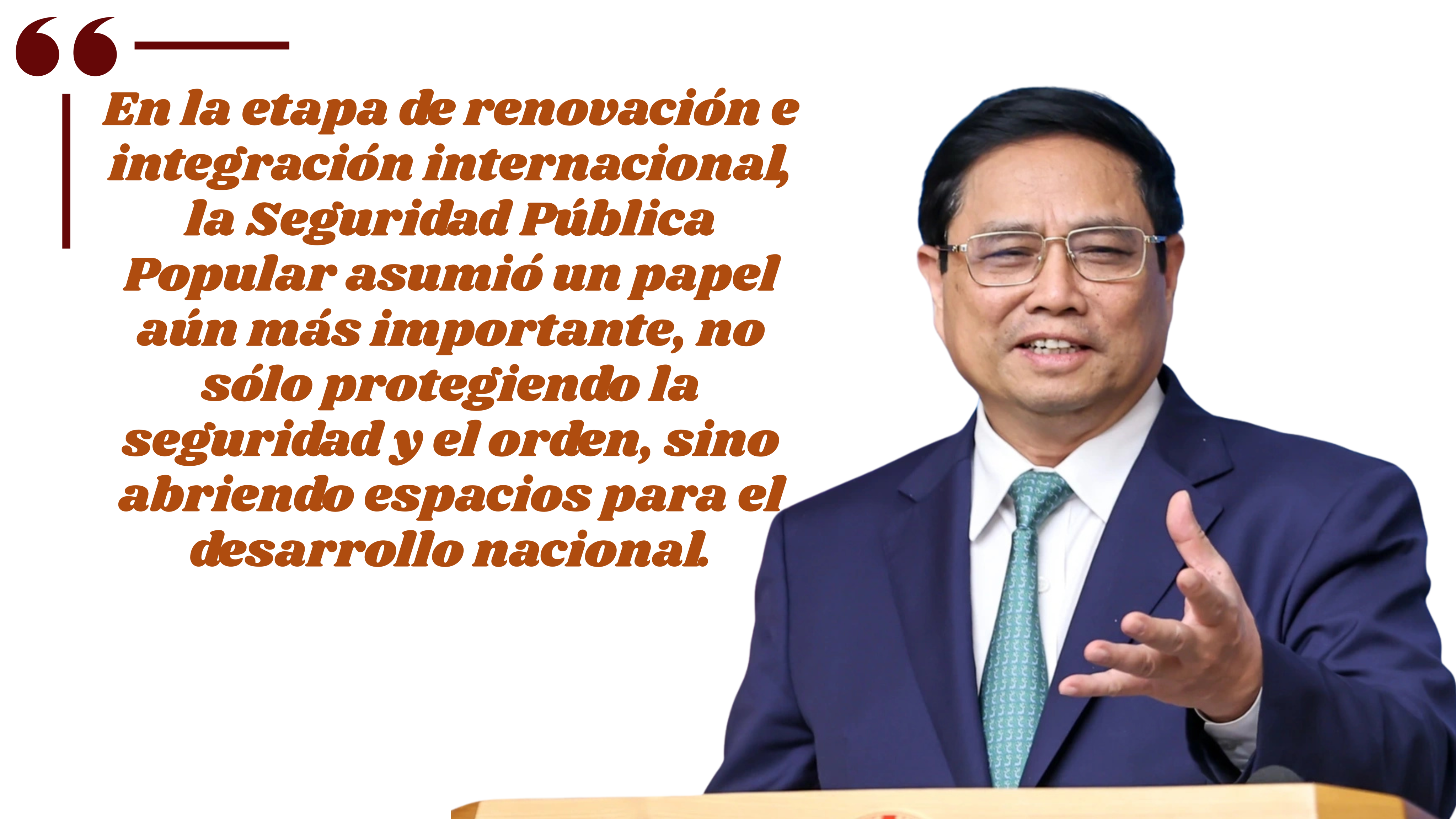 Este panorama impone a la labor de seguridad pública una responsabilidad cada vez mayor, más compleja y exigente en los tiempos venideros, que requiere, en cualquier circunstancia, preservar la soberanía nacional y la estabilidad política y social, creando un entorno pacífico y condiciones favorables para la construcción y el desarrollo del país, con el fin de alcanzar con éxito los dos objetivos estratégicos: para el año 2030, convertir a Vietnam en un país en desarrollo con una industria moderna y un ingreso medio-alto, y para 2045, transformarse en una nación desarrollada con altos ingresos.