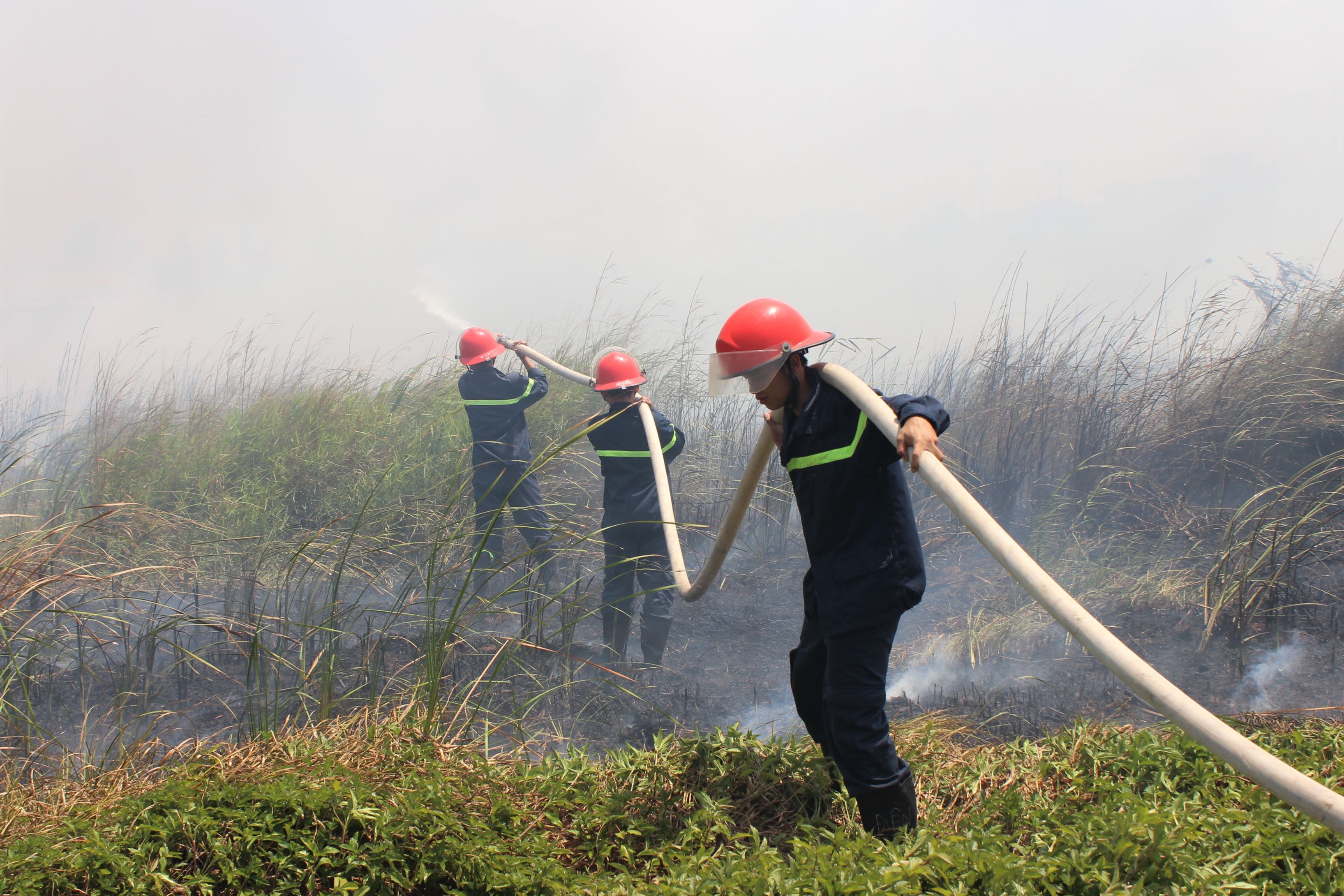 Los efectivos del Departamento de Policía de Prevención y Extinción de Incendios de la provincia de Bac Lieu (antes de la fusión) se esfuerzan por extinguir un incendio en una zona residencial. (Foto: Nhan Dan)
